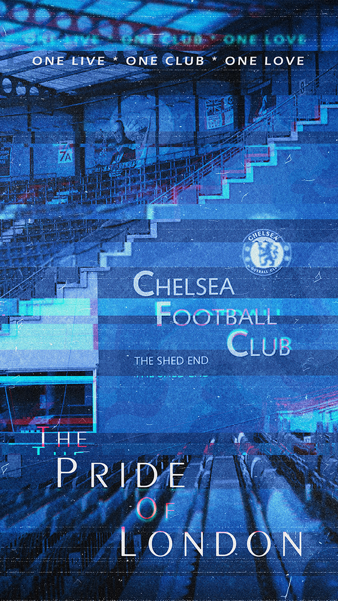 Adaptación creativa del estadio Stamford Bridge, hogar del Chelsea FC, transformando una composición horizontal en un formato vertical optimizado para Instagram Stories.